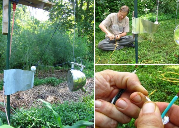 tea kettle, which gives a louder thud than the pet bowl, and helps to